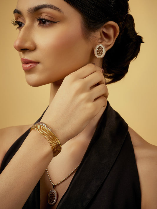 The Dewfall Leaf Necklace blends natural elegance with celestial charm. A graceful line of diamond-set leaves frames the neckline, leading to a radiant pear-shaped cluster that glimmers like a drop of morning dew. Delicate yet striking, this piece captures light with every movement, offering timeless sophistication. A signature creation from the House of Astral Symmetry, crafted for moments of pure brilliance.