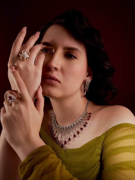 A timeless composition of rubies and diamonds crafted with exquisite detail, celebrating over 100 years of fine craftsmanship.